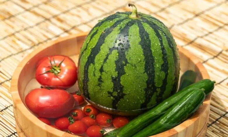 يساعد البطيخ على ترطيب الجسم وإنعاش البشرة من الداخل بفضل احتوائه على حوالي 92 بالمئة من الماء، وهو أحد أكثر الأطعمة الفعالة في الحد من الهالات الداكنة وانتفاخ محيط العينين كونه غني بمضادات الأكسدة مثل البيتا كاروتين والفيتامين C والليكوبين التي تساهم جميعها في تحسين مرونة البشرة وتعزيز حيويتها.