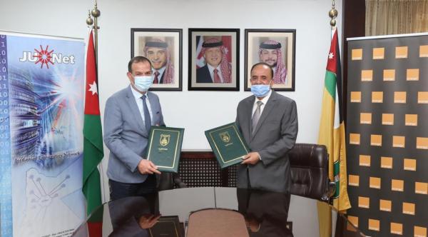 ووقع الاتفاقية رئيس هيئة مديري شركة شبكة الجامعات الأردنية/ رئيس الجامعة الأردنية، الأستاذ الدكتور عبد الكريم القضاة والمدير التنفيذي للقطاع المؤسسي والشركات لدى أورانج الأردن، المهندس سامي سميرات، في مبنى رئاسة الجامعة الأردنية.