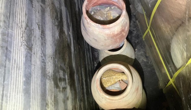 واضاف الناطق الاعلامي انه ومن خلال التحقيقات وجمع المعلومات تم تحديد مكان تخزين المواد المخدرة داخل احدى مركبات الشحن حيث تم التحرك للمكان وضبط مركبة الشحن وبتفتيشها عثر داخلها على كمية من الفخارات أُخفي بداخلها ما يزيد عن ٤٠٠ الف حبة مخدرة .