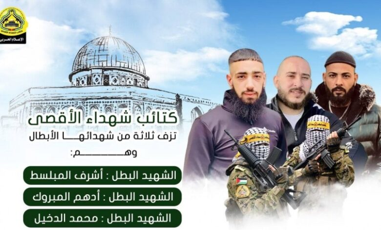 من جهتها نعت حركة الجهاد الإسلامي في فلسطين وذراعها العسكري “سرايا القدس”، “شهداء نابلس الأبرار الذين قضوا برصاص الاحتلال في عملية اغتيال جبانة وغادرة، بعد مسيرة طويلة من قتال العدو والتصدي لاقتحاماته، وهم الشهيد البطل أدهم مبروكة، والشهيد البطل محمد الدخيل، والشهيد البطل أشرف المبسلط”.