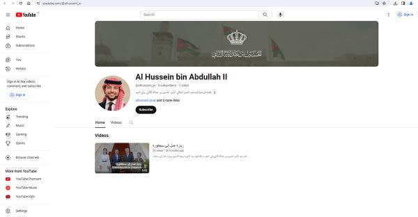 وتالياً رابط القناة الرسمية لسمو ولي العهد على منصة يوتيوب: https://www.youtube.com/@alhussein_jo.