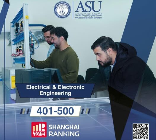 من جديد، عززت جامعة العلوم التطبيقية الخاصة حضورها الدولي بدخول تخصص الهندسة الكهربائية ضمن تصنيف شنغهاي العالمي للتخصصات الأكاديمية 2025، وهو أحد أكثر التصنيفات صرامة وتأثيرًا في تقييم الإنتاج العلمي وجودته على مستوى العالم.
