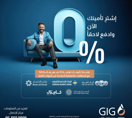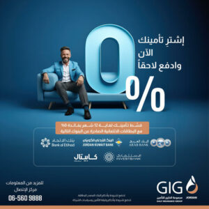 اشترِ تأمينك الآن، مع مجموعة الخليج للتأمين – الاردن gig، وتمتع بمرونة الدفع مع امكانية التقسيط بفائدة 0% ولغاية 12 شهر عند استخدام بطاقتك الائتمانية الصادرة عن البنوك التالية