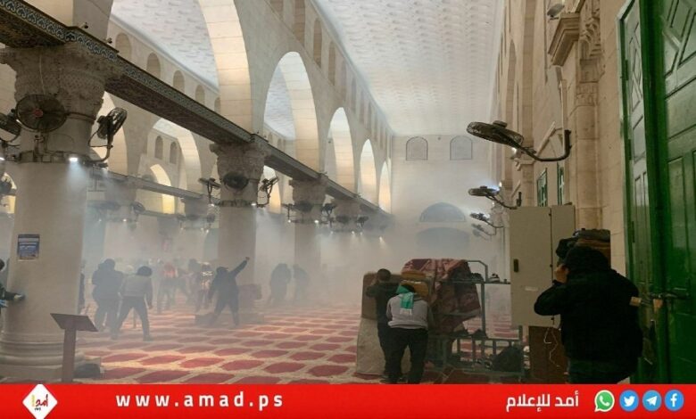 وأفاد شهود عيان، بأن قوات الاحتلال اقتحمت المصلي القبلي الذي يعتكف فيه المصلون منذ ساعات الفجر الأولى، ويتصّدون للاحتلال ورصاصه وقنابله.