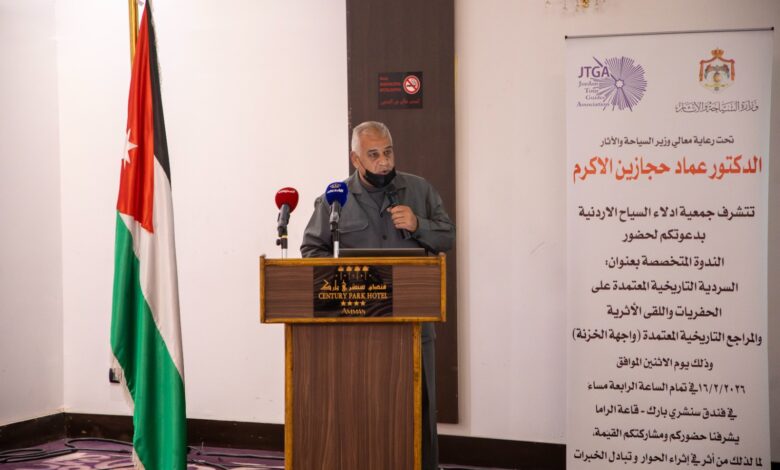 مندوباً عن وزير السياحة والآثار، افتتح مدير عام دائرة الآثار العامة الدكتور فوزي أبو دنة، اليوم الاثنين، الندوة المتخصصة التي نظمتها جمعية أدلاء السياح الأردنية بعنوان “السردية التاريخية المعتمدة على الحفريات واللقى الأثرية والمراجع التاريخية المعتمدة – واجهة الخزنة بالبترا”، بحضور نخبة من الخبراء والباحثين والأدلاء السياحيين، وممثلي الجهات المعنية بالشأن السياحي والأثري.