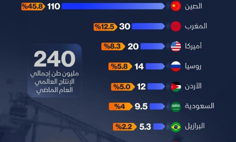 الأردن يحتل المرتبة الخامسة عالميًا في إنتاج الفوسفات