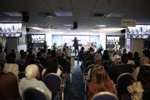 واحتضنت مبادرة “زاد الفنون” – المسار الثقافي لـ الجمعية الثقافية العربية، وبدعم من صندوق سمير عبد الهادي للثقافة والفنون – “الأوركسترا المجتمعية العربية”، بقيادة الموسيقي لطفي ملحس، والتي تمثل نموذجاً تربوياً وفنياً تشاركياً عابراً للأجيال.