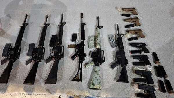 وأضاف أنه تم ضبط ثلاث حقائب محملة بخمس قطع أسلحة من نوع M-16 بالاضافة الى سبعة مسدسات وسلاح من نوع كلاشينكوف وذخيرة.