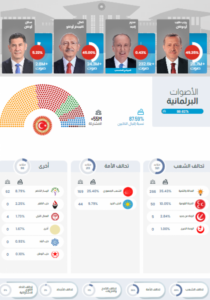 أعلن المجلس الأعلى للانتخابات التركية تقدم مرشح تحالف الجمهور الحاكم في تركيا رجب طيب أردوغان بنسبة 49.40%، وكيليتشدار أوغلو على 44.96٪، و5.2٪ لأوغان.