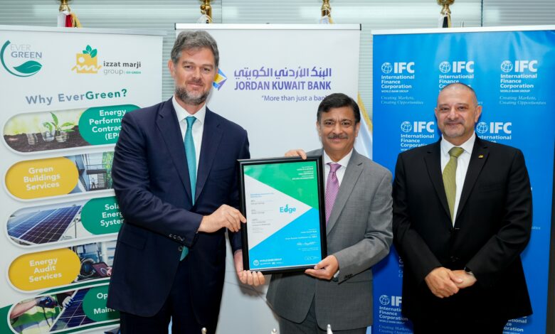 البنك الأردني الكويتي أول بنك في المملكة يحصل على شهادة “إيدج” للأبنية الخضراء من مؤسسة التمويل الدولية