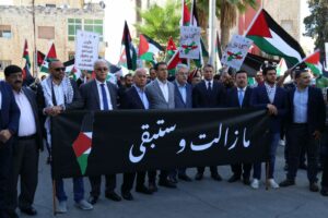 واننا من خلال هذه الوقفة التضامنية، نبعث برسالة تضامن الى اخوتنا في غزة، مؤكدين لهم، اننا نضع كافة مقدراتنا وامكانياتنا لدعم قضيتهم العادلة، داعين الله عز وجل ان ينصرهم على أعدائهم وأعداء الأمة”.