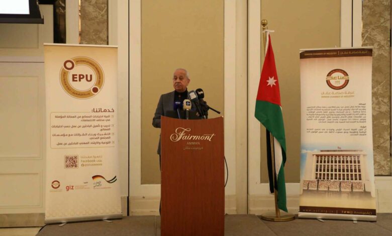 واضاف الجغبير خلال، لقاء، نظمته غرفة صناعة عمان، الاثنين، للتعريف بأهم منجزات وحدة التشغيل في القطاع الصناعي، التي تم انشائها من قبل غرفة صناعة عمان بدعم من  مشروع التشغيل في الاردن 2030 والمنفذ من قبل التعاون الدولي الالماني (GIZ) بتمويل من الوزارة الاتحادية الألمانية للتعاون الاقتصادي والتنمية(BMZ) ، بهدف توفير العمالة المؤهلة اللازمة للمصانع بالتوازي مع تشغيل المزيد من الأيدي العاملة الوطنية في الشركات الصناعية، ان دعم القطاعات الانتاجية، وخصوصا القادرة منها على خلق فرص العمل، وعلى رأسها القطاع الصناعي، يمكن ان تسهم في التخفيف من مشكلة البطالة، التي تشكل خطرا متناميا على صعيد الأمن المجتمعي.