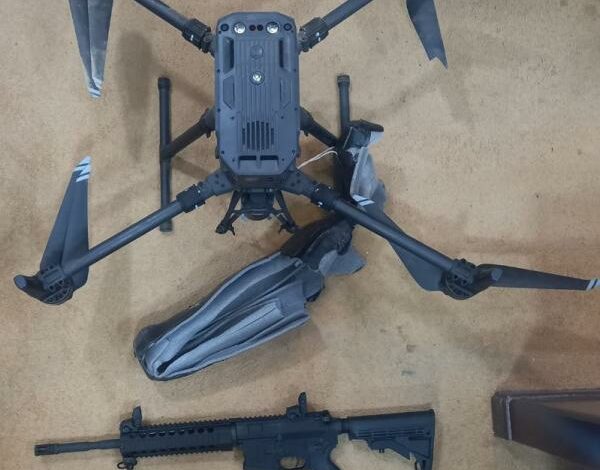 وبين المصدر أنه بعد تكثيف عمليات البحث والتفتيش للمنطقة تم العثور على بندقية M4 عدد (١)، و (٤) قنابل يدوية وتبين أنه تم إعداد الطائرة المسيرة بطريقة مفخخة في حال تم ضبطها من قبل عناصر حرس الحدود، وقام فريق هندسي مختص بالتعامل معها والتحفظ عليها، وتحويل المضبوطات إلى الجهات المختصة.