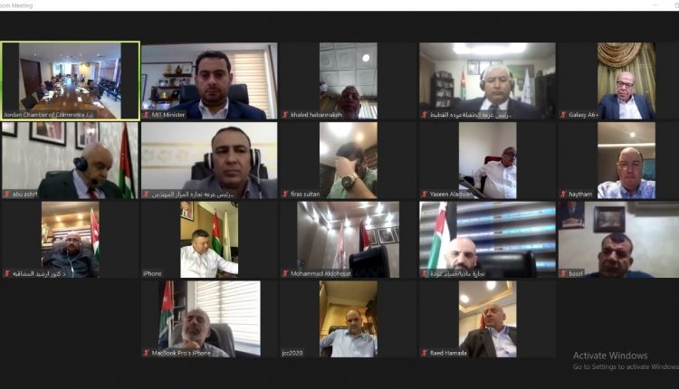 تأكيداً على أهمية استمرار حلقات التواصل والحوار الفعال ما بين الحكومة وممثلي كافة الفعاليات الاقتصادية لغرض الاستفادة من الفرص الاقتصادية المتاحة ومعالجة التحديات التي تضعف القدرة الإنتاجية والتنافسية لمختلف المنشآت الاقتصادية، التقى معالي د. طارق الحموري، وزير الصناعة والتجارة والتموين عبر تقنية الاتصال المرئي بسعادة العين نائل الكباريتي/ رئيس مجلس إدارة غرفة تجارة الأردن وأعضاء مجلس إدارة الغرفة لاستعراض الواقع الراهن للقطاع التجاري والمحددات التي تواجه العاملين في هذا القطاع خاصة تلك المتعلقة بتبعات جائحة فيروس كورونا.