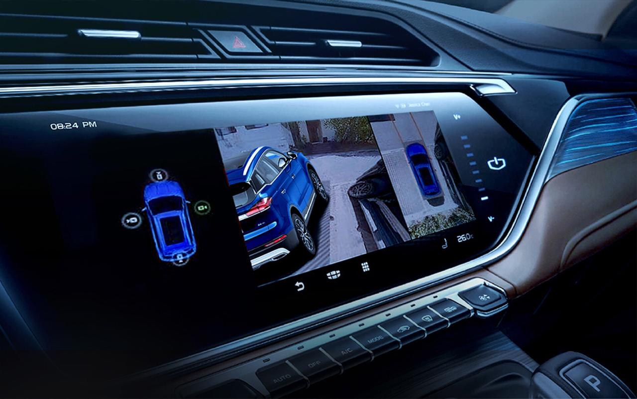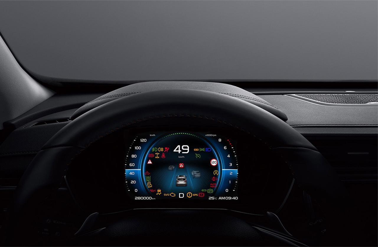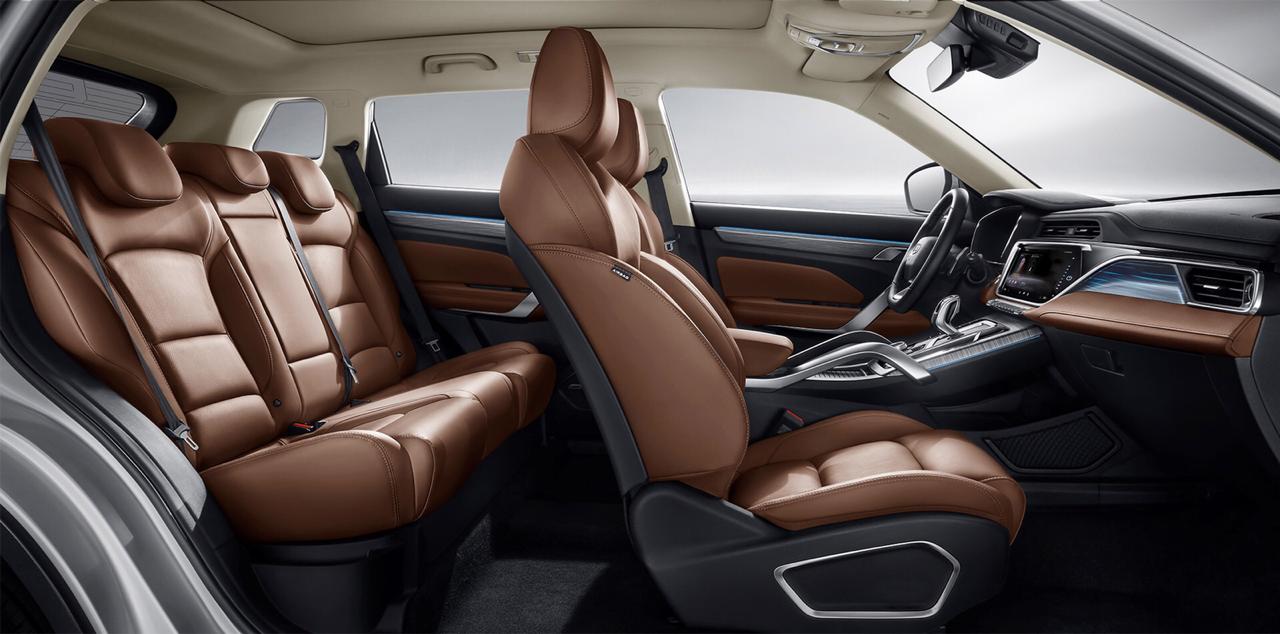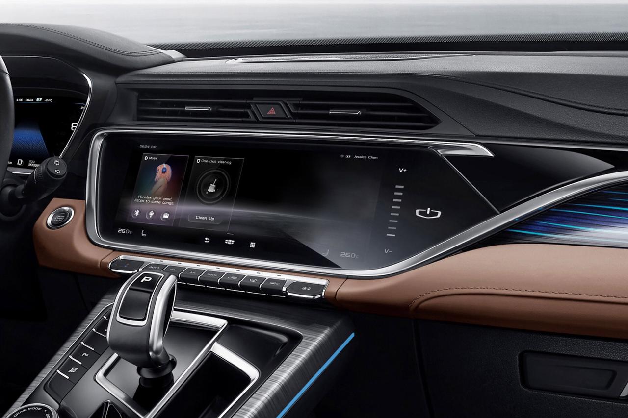 تتسم مقصورة السيارة بتصميم أنيق متناغم يضفي إليها طابعاً من الرقي والهدوء. وتمتد فتحات الهواء من جهتي لوحة العدادات وتتابع حتى البابين، مما يحسن من شكل المساحة العرضية إلى ذلك، تتداخل الطبقات بانسياب في ما بينها وتلتف لتحسين العمق البصري في أرجاء المقصورة. أما الميزة الأكثر لفتاً للانتباه فهي شاشة المعلومات والترفيه الوسطية عالية الوضوح قياس 12.3 بوصة التي تعمل باللمس ولوحة عدادات LCD قياس 7 بوصات، وتندمج كلتا الشاشتين بسلاسة في اللوحة الأمامية المتطورة مع الإنارة المحيطة التي تحاكي نسيج الخشب