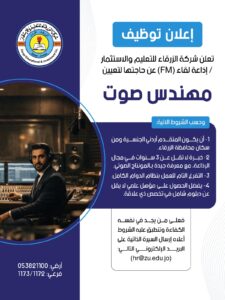 “الزرقاء للتعليم والاستثمار” تعلن عن حاجتها لتعيين مهندس صوت 25/01/2026 25/01/2026 فيسبوك تويتر ماسنجر ماسنجر واتساب ڤايبر مشاركة عبر البريد طباعة