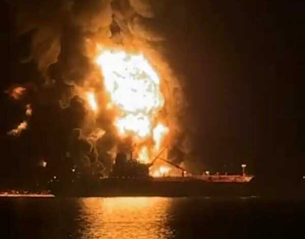 وأضاف أن العراق أجلى جميع أفراد الطاقم البالغ عددهم 25 من السفينتين، وأن النيران لا تزال مشتعلة فيهما.
