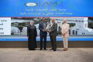 تتقدّم جامعة العلوم التطبيقية الخاصة بأحرّ التهاني والتبريكات إلى الفائزين بجوائز البحث العلمي على مستوى الجامعة والكليات للعام الأكاديمي 2024-2025، تقديرًا لجهودهم المتميزة وإنجازاتهم البحثية التي تُجسّد روح الإبداع والتميّز الأكاديمي في الجامعة، وتُعزّز مسيرتها في دعم البحث العلمي والابتكار.