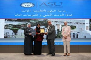تتمنى جامعة العلوم التطبيقية الخاصة دوام التوفيق والنجاح لجميع كوادرها الأكاديمية، ومزيدًا من الإنجازات التي تُسهم في رفعة الجامعة وتعزيز مكانتها محليًا وعالميًا.