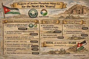 تستعد شركة مناجم الفوسفات الأردنية لإحداث نقلة نوعية في المشهد الصناعي الوطني، حيث كشفت الستار عن خطة استثمارية استراتيجية للسنوات الست القادمة، تتضمن حزمة مشاريع كبرى بتكلفة إجمالية تصل إلى 1.8 مليار دولار. وتركز هذه الرؤية على تعزيز القيمة المضافة للفوسفات الخام وتحويل العقبة إلى مركز عالمي للصناعات التحويلية والأسمدة المتخصصة.