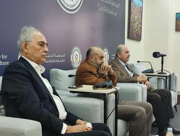 بحضور العديد من الفعاليات الرسمية والشعبية وأعضائها، استضافت الجمعية الاردنية للعلوم والثقافة ظهر السبت دولة السيد طاهر المصري رئيس الوزراء الأسبق و د.فيصل الرفوع عميد كلية الامير حسين بن عبدالله للدراسات الدولية، للحديث عن الاوضاع الراهنة في فلسطين وما تشهدها من أحداث حرب غزة.