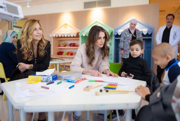 الملكة تزور أطفال غزة المصابين بالسرطان في مركز الحسين