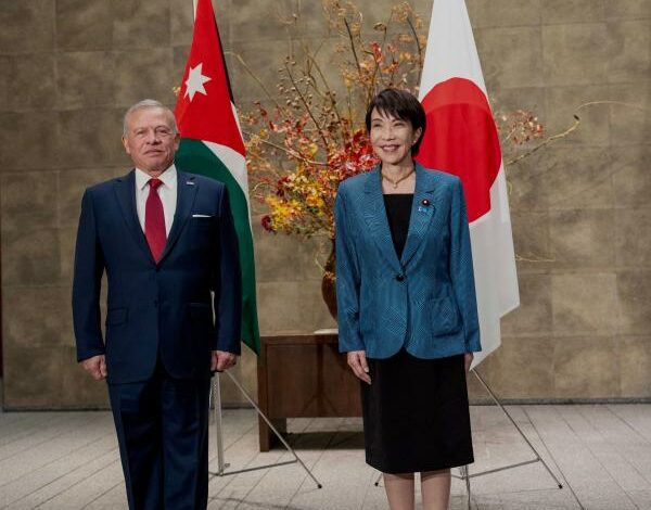 من جانبها، رحبت رئيسة الوزراء اليابانية بزيارة جلالته لليابان، معربة عن تقديرها للدور المهم للأردن، بقيادة جلالة الملك، في السعي لتحقيق الاستقرار في المنطقة، ومؤكدة حرص بلادها على تعميق الشراكة الاستراتيجية مع المملكة.