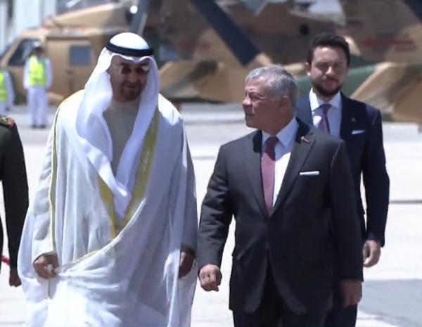 استقبل جلالة الملك عبدالله الثاني وسمو الأمير الحسين بن عبدالله الثاني ولي العهد، اليوم الأربعاء، سمو الشيخ محمد بن زايد آل نهيان رئيس دولة الإمارات العربية المتحدة الشقيقة لدى وصوله عمان في زيارة رسمية.