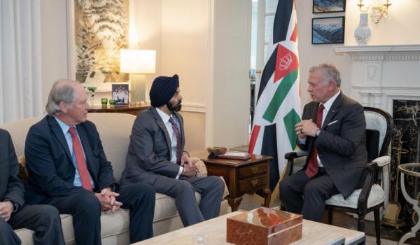 التقى جلالة الملك عبدالله الثاني في واشنطن، اليوم الاثنين، رئيس مجموعة البنك الدولي أجاي بانغا، وبحثا سبل تعزيز التعاون الاقتصادي والتنموي.