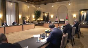 وحضر اللقاء رئيس الديوان الملكي الهاشمي يوسف حسن العيسوي، ومدير مكتب جلالة الملك، الدكتور جعفر حسان.
