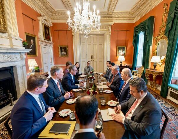التقى جلالة الملك عبدﷲ الثاني، الاثنين، رئيس الوزراء البريطاني السير كير ستارمر في لندن، بحضور سمو الأمير الحسين بن عبدﷲ الثاني ولي العهد.