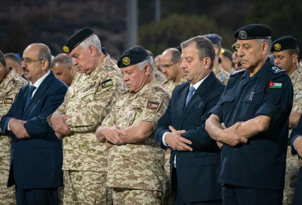 وحيا جلالة الملك نشامى القوات المسلحة والأجهزة الأمنية في مواقعهم كافة، مشيدا بالمستوى المتميز في أداء واجباتهم ومهامهم.