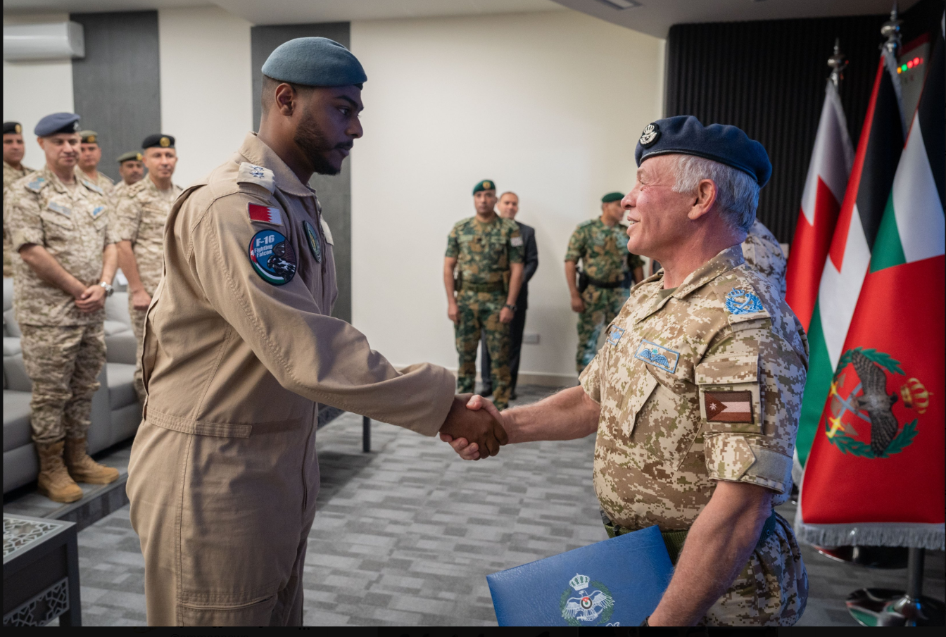 ورعى جلالة القائد الأعلى تخريج الدورة التحويلية للطيران القتالي/26، والتي شارك فيها طيارون من سلاح الجو الملكي الأردني ومن مملكة البحرين الشقيقة، بحضور قائد جناح المقاتلات في سلاح الجو الملكي البحريني، والملحق العسكري البحريني في الأردن.