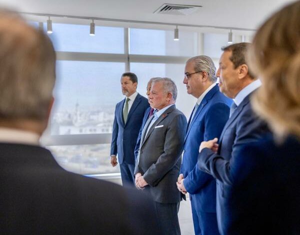 ورافق جلالة الملك خلال الزيارة رئيس الديوان الملكي الهاشمي يوسف حسن العيسوي، ومدير مكتب جلالة الملك، المهندس علاء البطاينة.