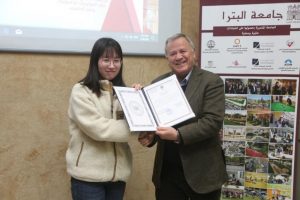 وسلم د مروان المولا شهادات التخريج إلى الطلبة من جامعة “دانكوك” في كوريا الجنوبية، قائلا إن “الجامعة تحرص على تفعيل دور مراكز الجامعة وبرامجها خاصة برنامج تعليم اللغة العربية لغير الناطقين بها، بما يحقق الاستفادة للطلبة الأجانب وكذلك لطلبة جامعة البترا من خلال برامج التبادل الطلابي والأكاديمي”، مضيفًا أن “التعاون الطلابي الذي توفره هذه البرامج، يحقق الفائدة العلمية، كما يساعد في إثراء المعرفة الثقافية من خلال الاطلاع على ثقافة الدولة التي يزورها الطلبة، وكذلك من خلال الطلبة أنفسهم كسفراء لبلادهم وثقافتها عند ابتعاثهم في مثل هذه البرامج”.