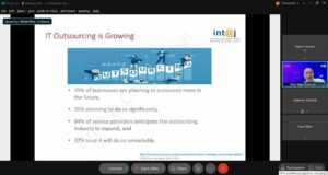 ودار نقاش موسّع خلال الاجتماع حول أهمية التعهيد والإسناد للخارج (IT Outsourcing) بالنسبة للشركات في الأردن، حيث اكد المجتمعون على ان الشركات لديها نماذج كثيرة لتطبيق الـ (IT Outsourcing)، لاسيما مع المنافسة الكبيرة مع دول المنطقة والعالم، داعين الى وجود برامج متخصصة لتدريب الخريجين وتهيئتهم للعمل ضمن بيئة التعهيد والإسناد للخارج في هذا المجال.