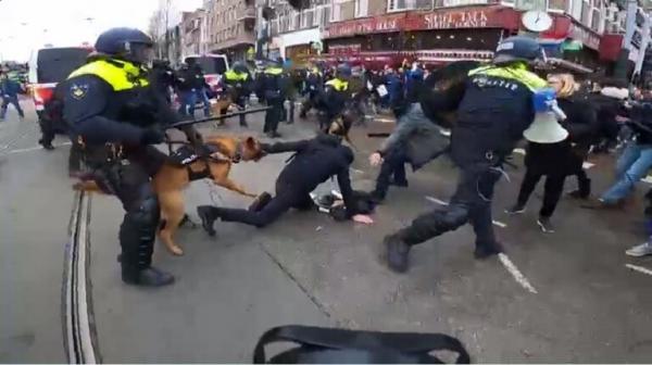 بالهراوات والكلاب .. الشرطة تفرق المحتجين على قيود كورونا في أمستردام