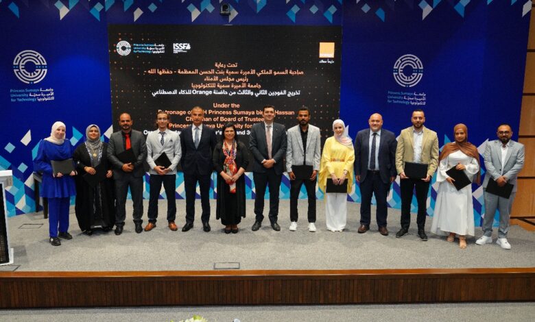 تحت رعاية صاحبة السمو الملكي الأميرة سمية بنت الحسن المعظمة، احتفلت أورنج الأردن وجامعة الأميرة سمية للتكنولوجيا والصندوق الأردني للريادة بتخريج الفوجين الثاني والثالث من حاضنة أورنج للذكاء الاصطناعي، المنفذة تحت مظلة مركز أورنج الرقمي والممولة من الصندوق، وبالشراكة مع الجامعة، وهي الأولى من نوعها في الأردن التي تستهدف المشاريع المبنية على تقنية الذكاء الاصطناعي.
