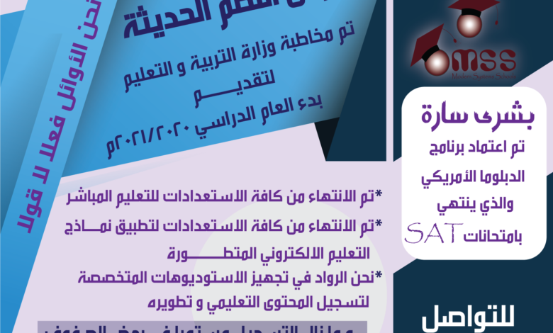 تعلن  مدارس النظم الحديثة عن استمرار التسجيل ..