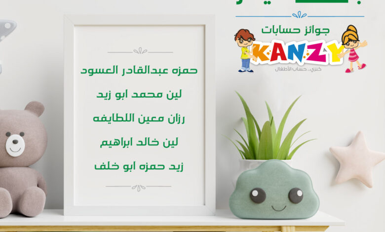 وقد أعلن البنك فوز كل من الطفل حمزه العسود، والطفل زيد أبو خلف، فضلاً عن الطفلة لين أبو زيد، والطفلة رزان اللطايفه، والطفلة لين إبراهيم، بالجائزة النقدية الشهرية لحساب توفير الأطفال “كنزي”.