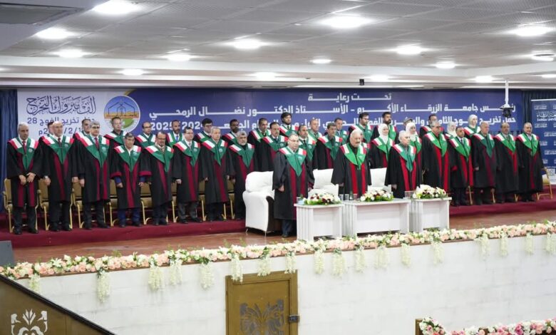 وأوضح الرمحي أن الجامعة لا تكتفي فقط بتقديم المعرفة، بل تسعى إلى تنمية شخصية الطالب وصقل مهاراته القيادية والبحثية، ليكون قادرًا على التأثير الإيجابي في مجتمعه. كما عبّر عن شكره وتقديره لأعضاء الهيئتين التدريسية والإدارية على جهودهم المتواصلة في تقديم تعليم نوعي يسهم في صناعة قادة المستقبل، متمنيًا للخريجين المزيد من التقدم والنجاح في حياتهم العلمية والعملية.