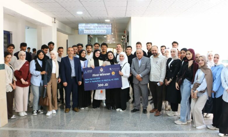 حصدت كلية تكنولوجيا المعلومات في جامعة الزرقاء، اليوم الأحد الموافق 26 تشرين الأول 2025، المركز الأول في مسابقة هاكاثون الذكاء الاصطناعي، والتي عقدت في محافظة المفرق، برعاية وزير الإدارة المحلية، وبمشاركة ما يزيد على 100 فريق من مختلف الجامعات الأردنية الحكومية والخاصة.