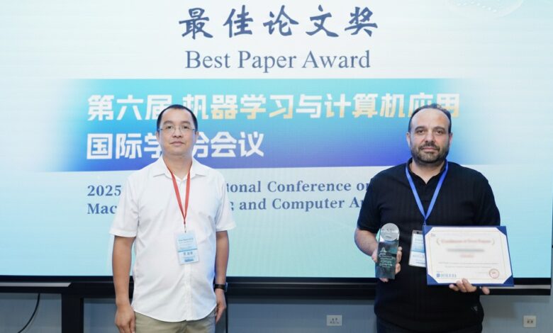 ونظرًا لتميّز البحث من حيث المنهجية العلمية والابتكار والنتائج التطبيقية، منحت لجنة المؤتمر الأستاذ الدكتور عصام الداود جائزة أفضل بحث علمي في مؤتمر ICMLCA 2025، تقديرًا لإسهامه البارز في تطوير تقنيات الذكاء الاصطناعي وتعلّم الآلة.