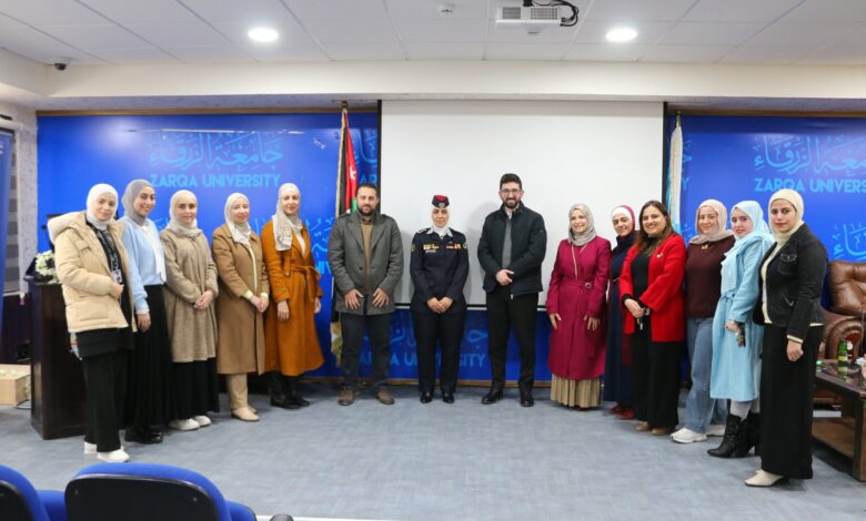 عقدت كلية الصيدلة في جامعة الزرقاء، اليوم الأربعاء 1 نيسان 2026، ورشة عمل حول كيفية التعامل مع المواد الكيميائية، قدمتها الملازم الأول علا الكردي من مديرية الأمن العام – الدفاع المدني.