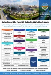 جامعة الزرقاء تهنئ الطلبة الناجحين في الثانوية العامة