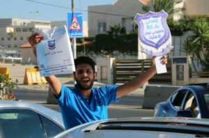 وقام فريق الجامعة بتوزيع الهدايا و الحلوى، وتسليم الطلبة الناجحين طلبات ومنشورات توضح آلية الالتحاق بالجامعة