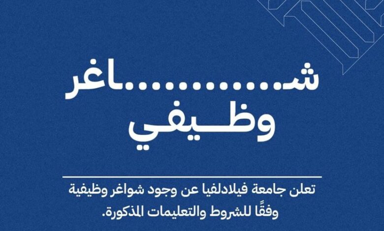تعلن جامعة فيلادلفيا عن حاجتها لتعيين: