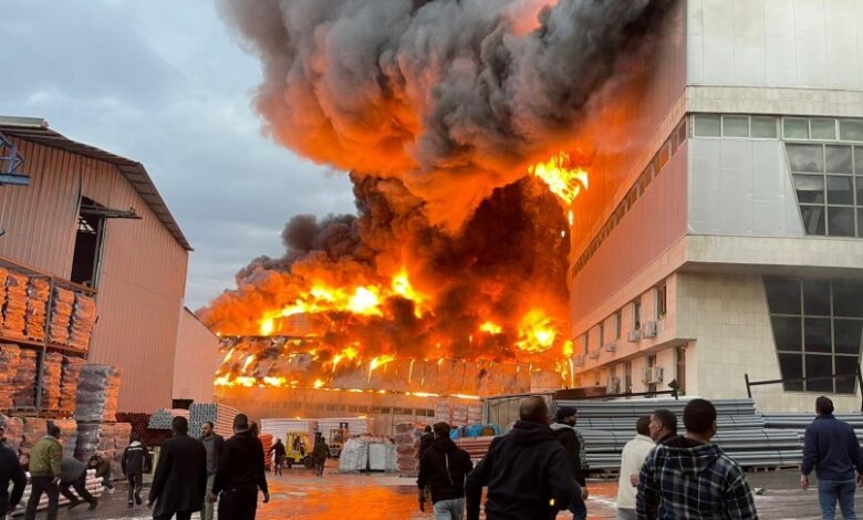 اندلع حريق ضخم، مساء اليوم الثلاثاء، في مصنع “رويال” للمواد البلاستيكية بمدينة الخليل، ما دفع السلطت هناك إلى إعلان حالة الطوارئ من الدرجة الاولى.