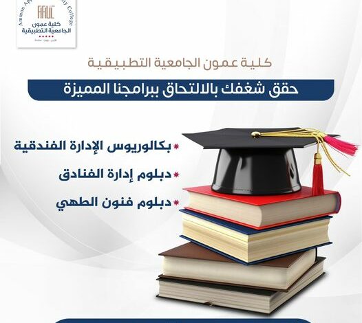 حقق شغفك بالإلتحاق في برامج كلية عمون الجامعية التطبيقية