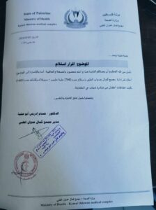 ويقول الكتاب: نأمل من الله، أن يصلكم كتابنا هذا وانتم تنعمون بالصحة والعافية (…)، تقر إدارة مجمع كمال عدوان الطبي باستلام عدد 700 علبة حليب، وسيريلاك، وكذلك عدد 1450 بكيت حفاظات أطفال من مبادرة شباب حي الطفايلة.